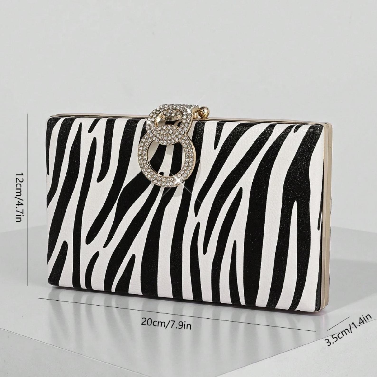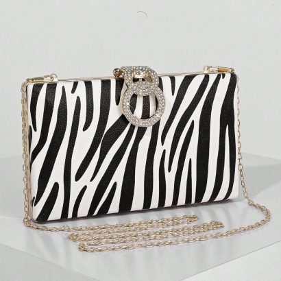Bold Statement Design: Black and white zebra print clutch with a sleek structured silhouette for an eye-catching formal look.