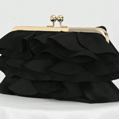 Elegant Ruffle Design: Black evening clutch with layered ruffle detailing for a dramatic, statement formal look.