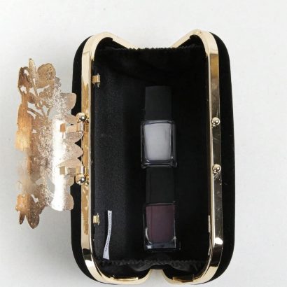 Elegant Velvet Finish: Black evening clutch with a smooth velvet-like exterior for a timeless, polished formal look.