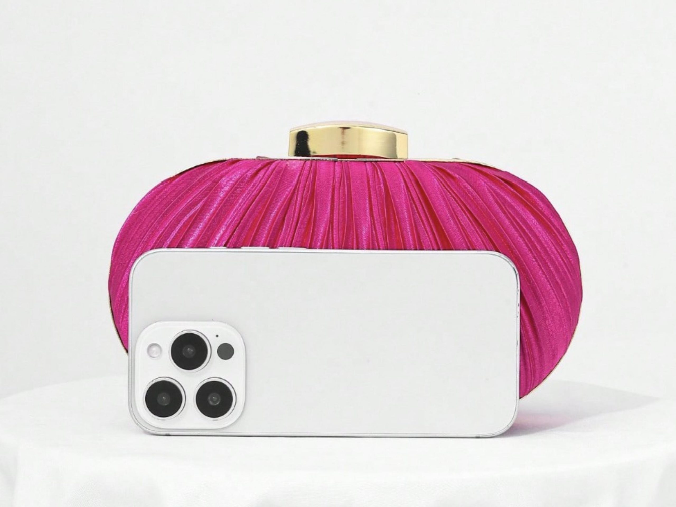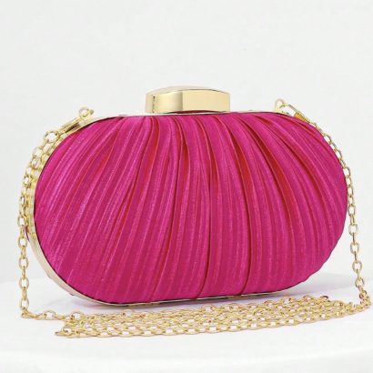 Bold Elegant Design: Fuchsia pink evening clutch with a pleated textured exterior for a vibrant, eye-catching formal look.